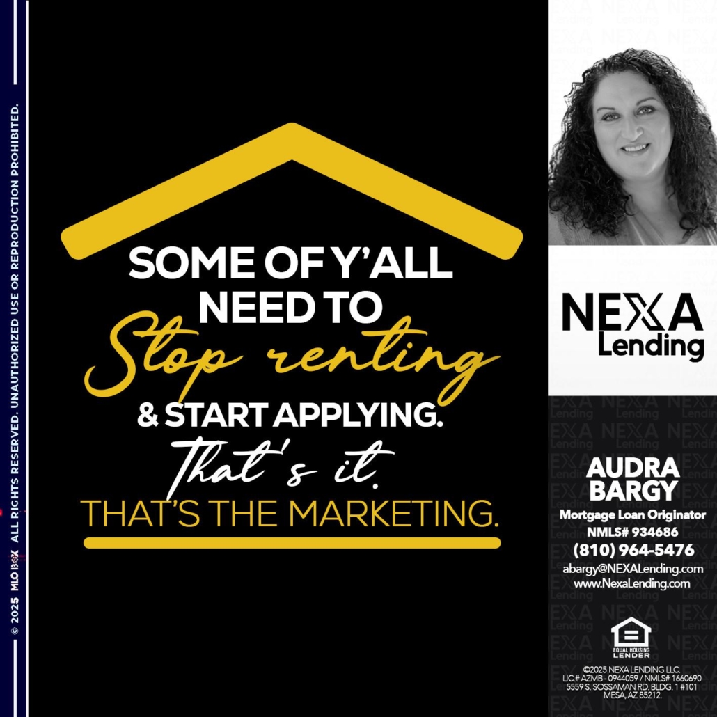 some of you - Audra Bargy -Mortgage Loan OfficerHi, my name is Audra Bargy. I’m a Loan Officer with NEXA Mortgage LLC., offering personalized mortgage solutions, fast customized quotes, great rates and service with integrity.